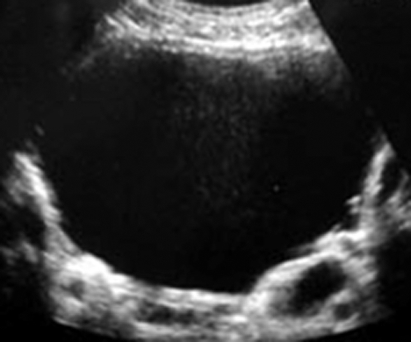 Voici une échographie vésicale réalisée au décours d’un bilan de dysurie, que voit-on?