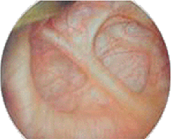 Fibroscopie vésicale réalisée au cours d’un bilan de troubles mictionnels, que voit-on?
