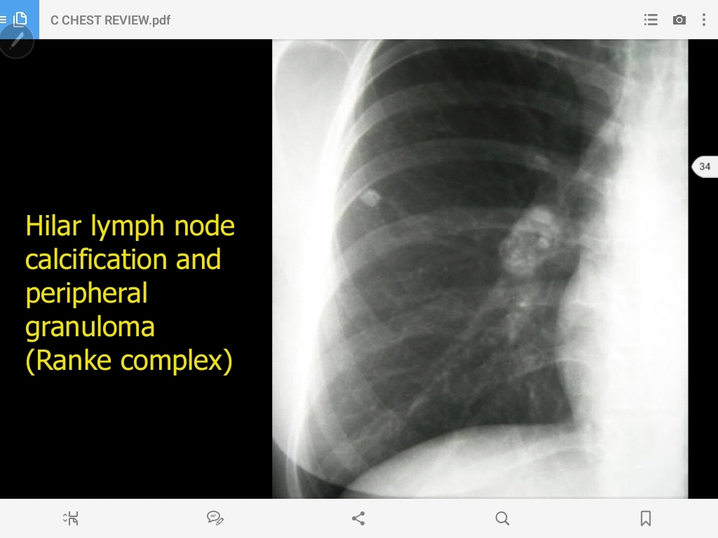 hilar lymph node enlargement and a peripheral granuloma (Ranke complex)