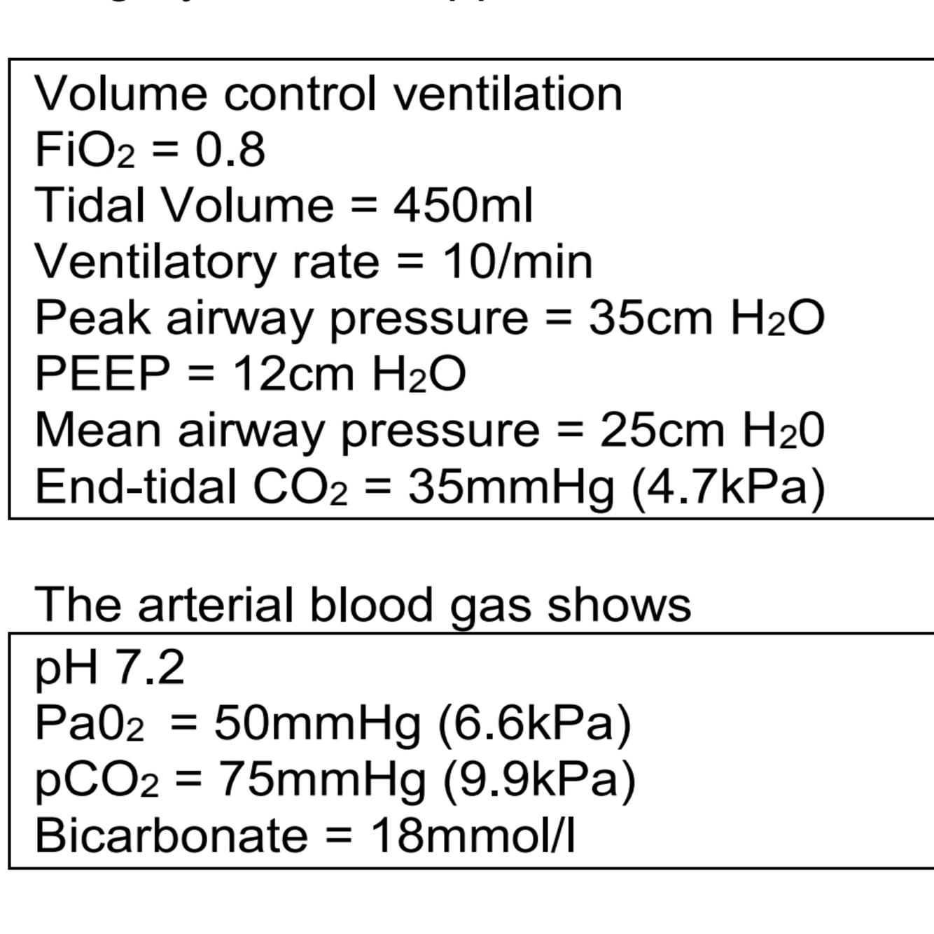 A 54-year-old woman with lupus is hypoxaemic in a Durban intensive care unit after abdominal surgery. She is supported on the following ventilatory parameters