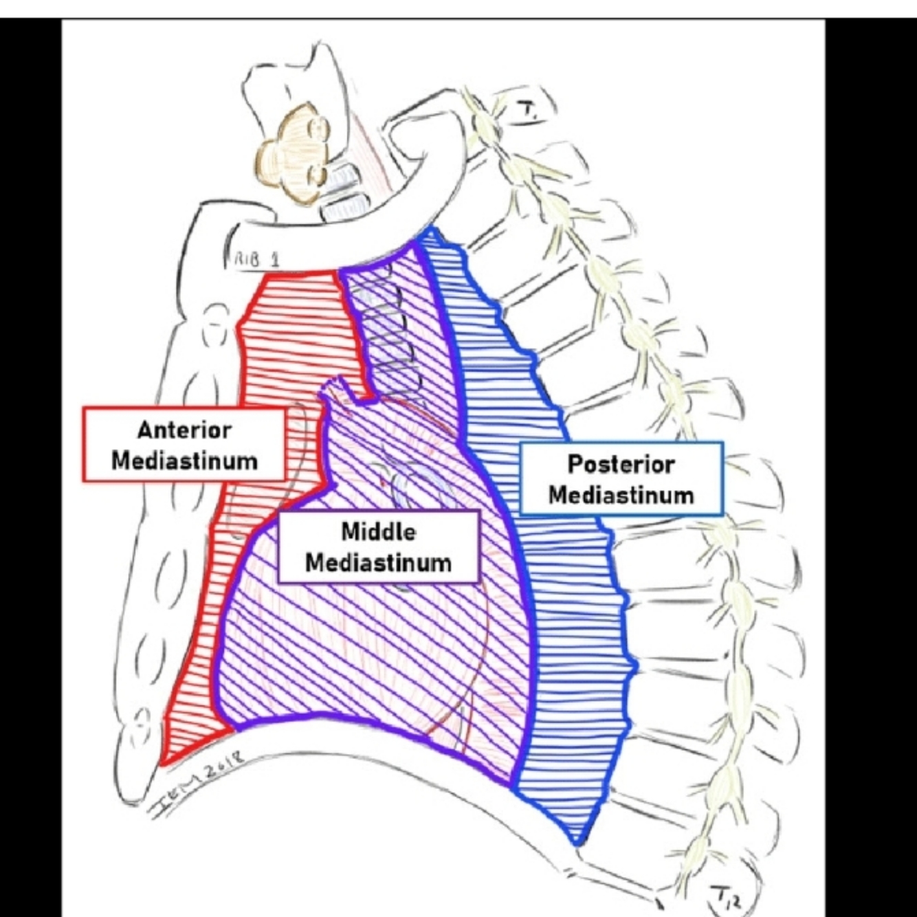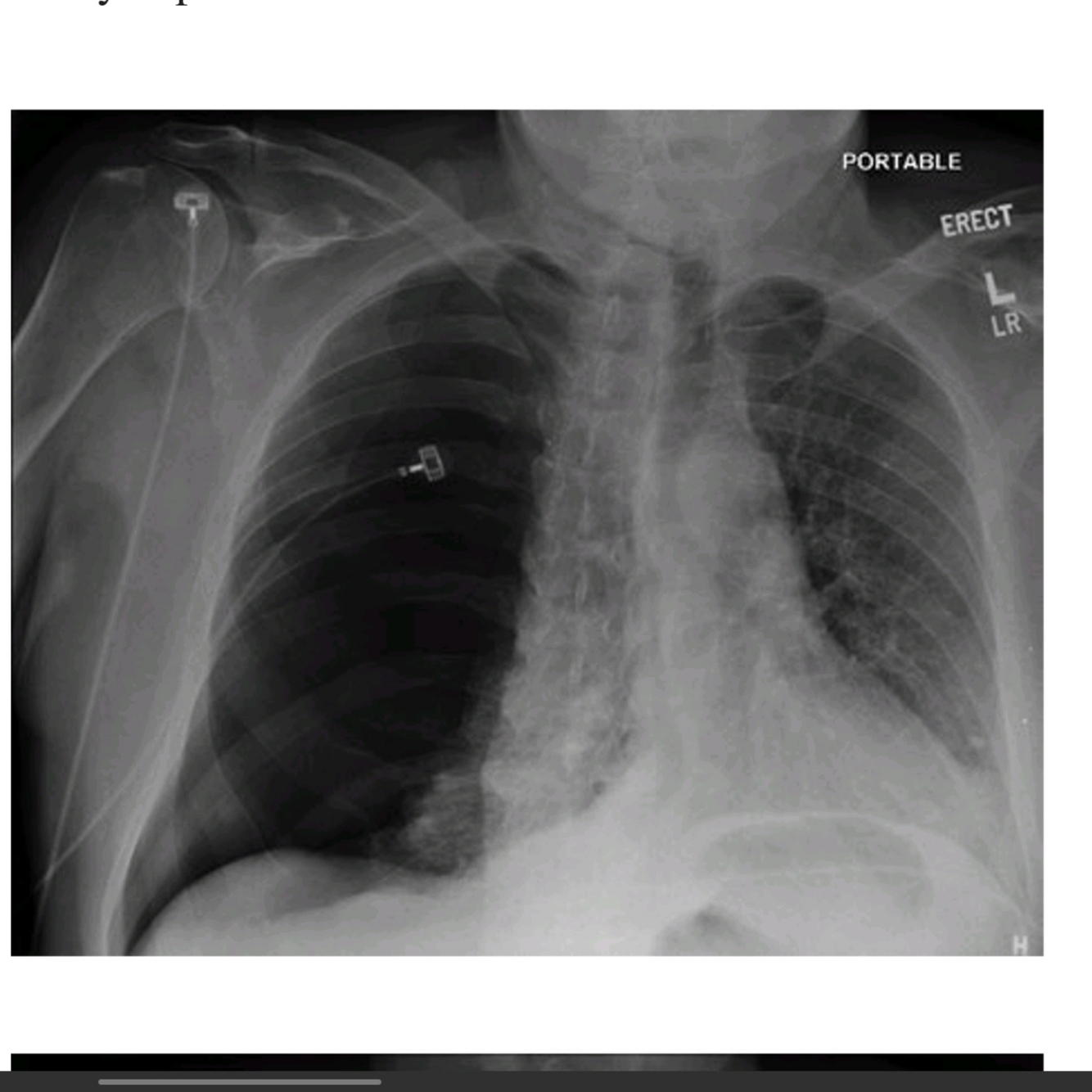 ○ With a finding of central mediastinum, diagnostic considerations include consolidation/pneumonia, pulmonary edema/ARDS, small to moderate pleural effusions (most likely would cause a partial rather than a complete whiteout), and mesothelioma. ○ Small and moderate pleural effusions tend to gravitate posteriorly without producing mediastinal shift.