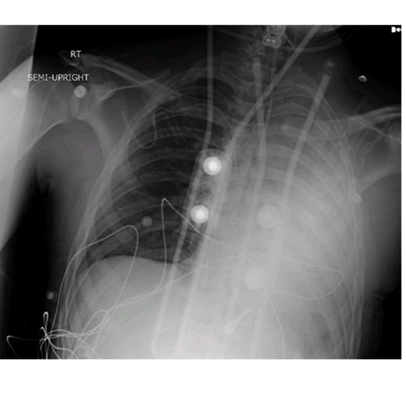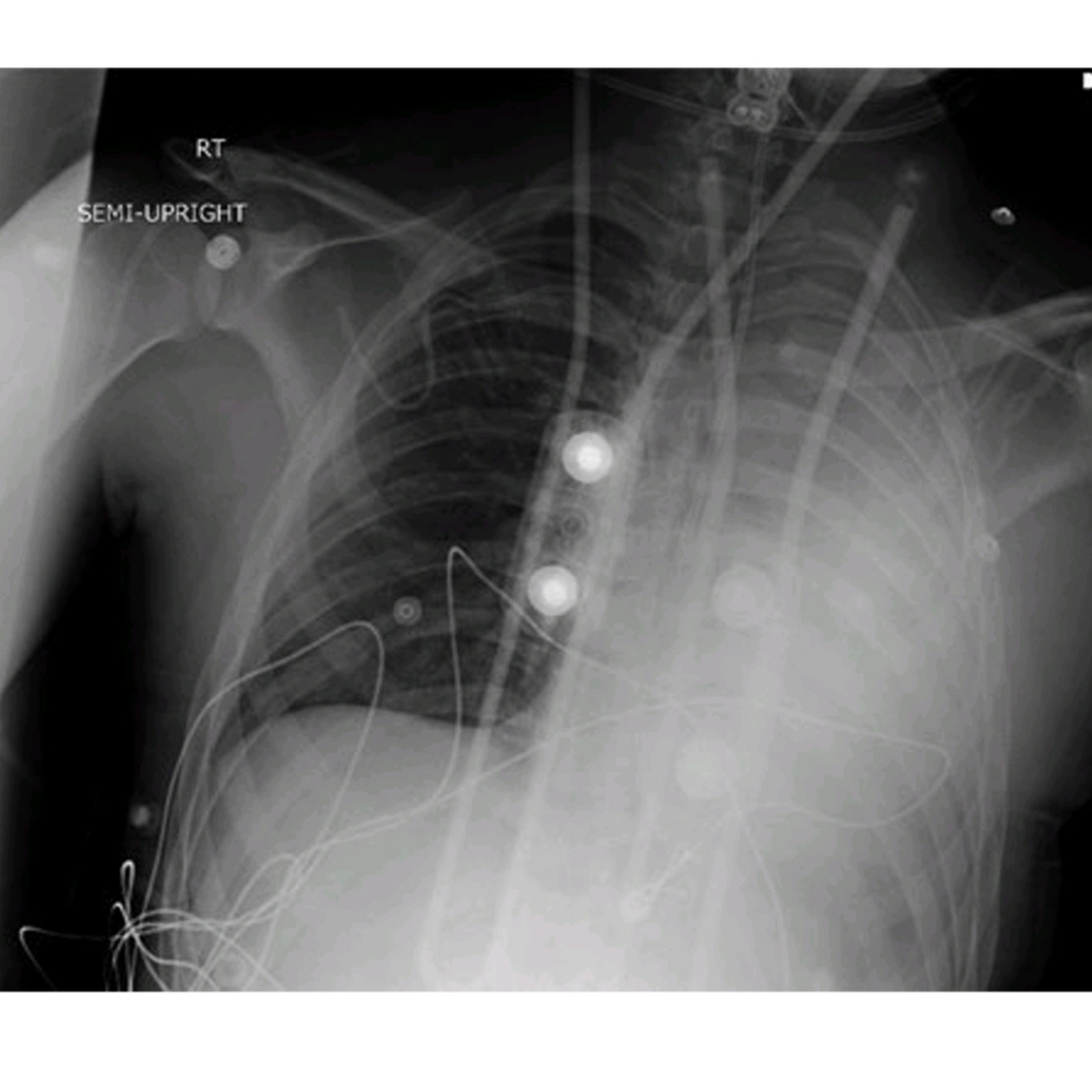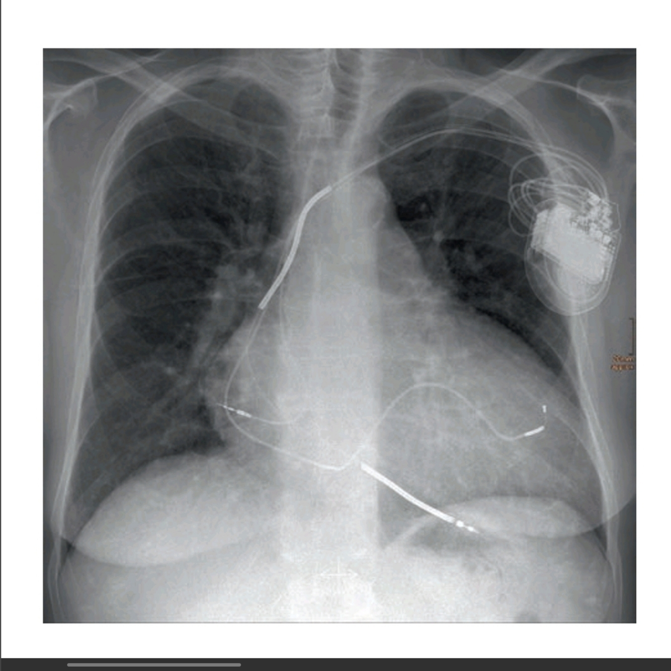 This patient has an implantable biventricular cardio-defibrillator (BiV ICD) [1].