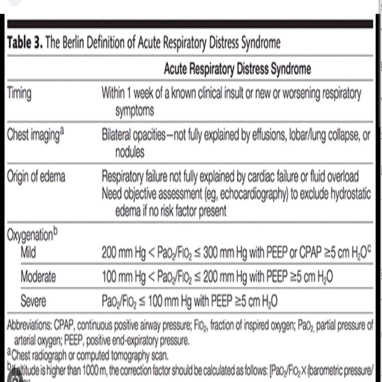 ○ The Berlin definition, dated 2012, states that acute respiratory distress syndrome is an entity characterized by hypoxemia and stiff lungs that occurs within a week of a known clinical insult or new/worsening respiratory symptoms.