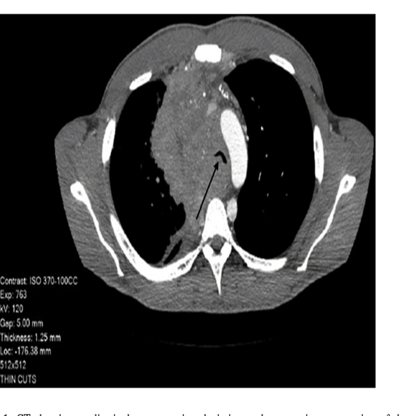 A 58-year-old man with a diagnosis of Hodgkin’s disease presents to the anesthesia preoperative clinic prior to placement of a port. He complains of mild difficulty in sleeping totally supine and clinically shows fullness of the veins of the neck. CT scan (Fig.48.1) shows that he has a mediastinal mass with both tracheal deviation and crescentic compression. 1. What are the symptoms of a mediastinal mass?