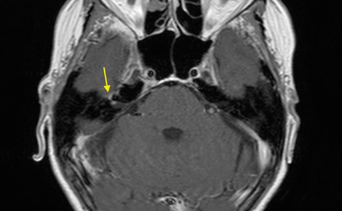 An MRI of Bell’s palsy, may reveal contrast enhancement of the facial nerve.