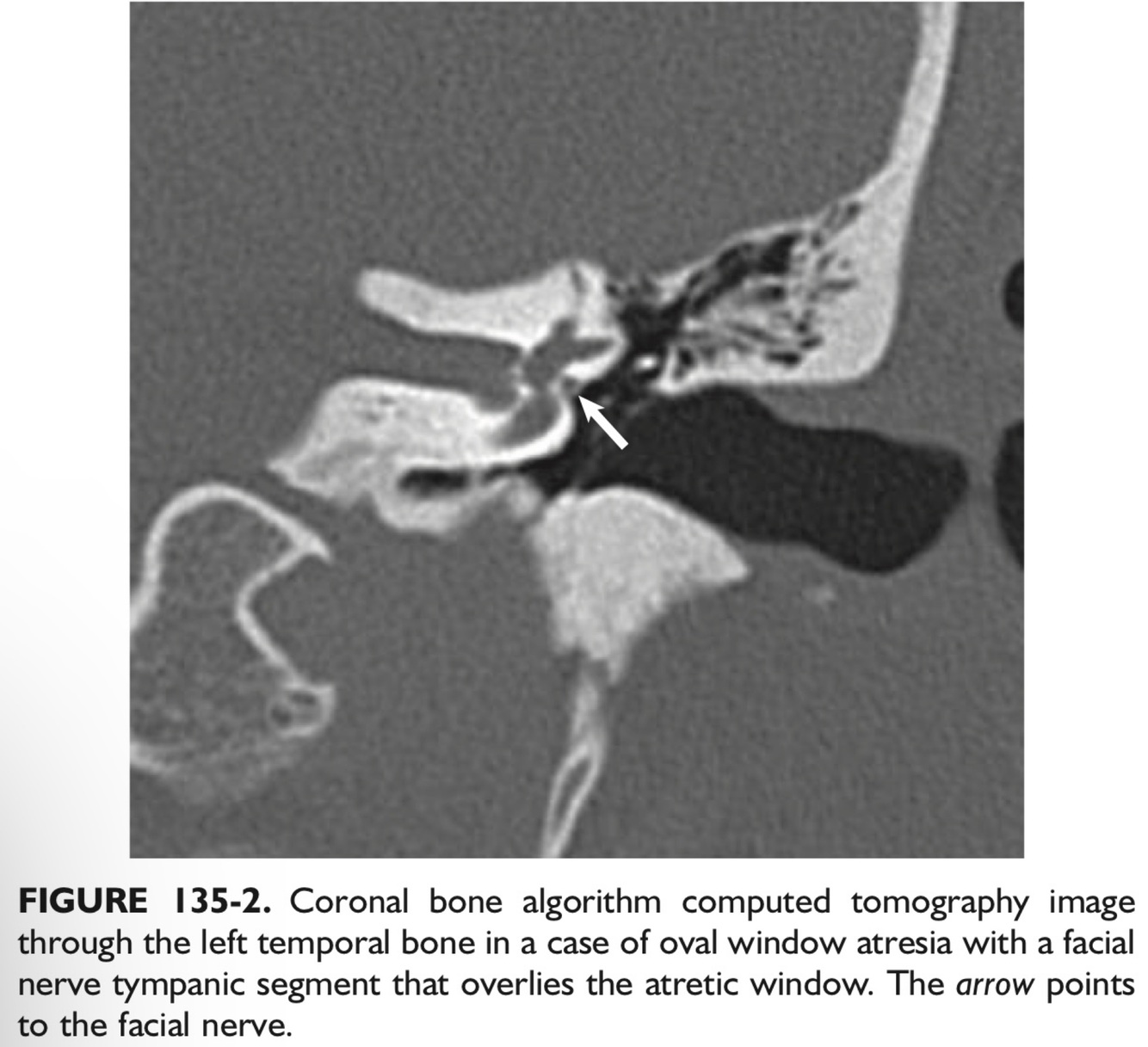 In a patient with atresia of the EAC, the FN tends to be dehiscent in the tympanic segment and can overlie the oval window.