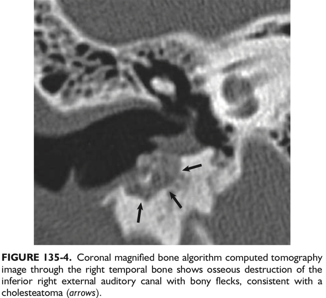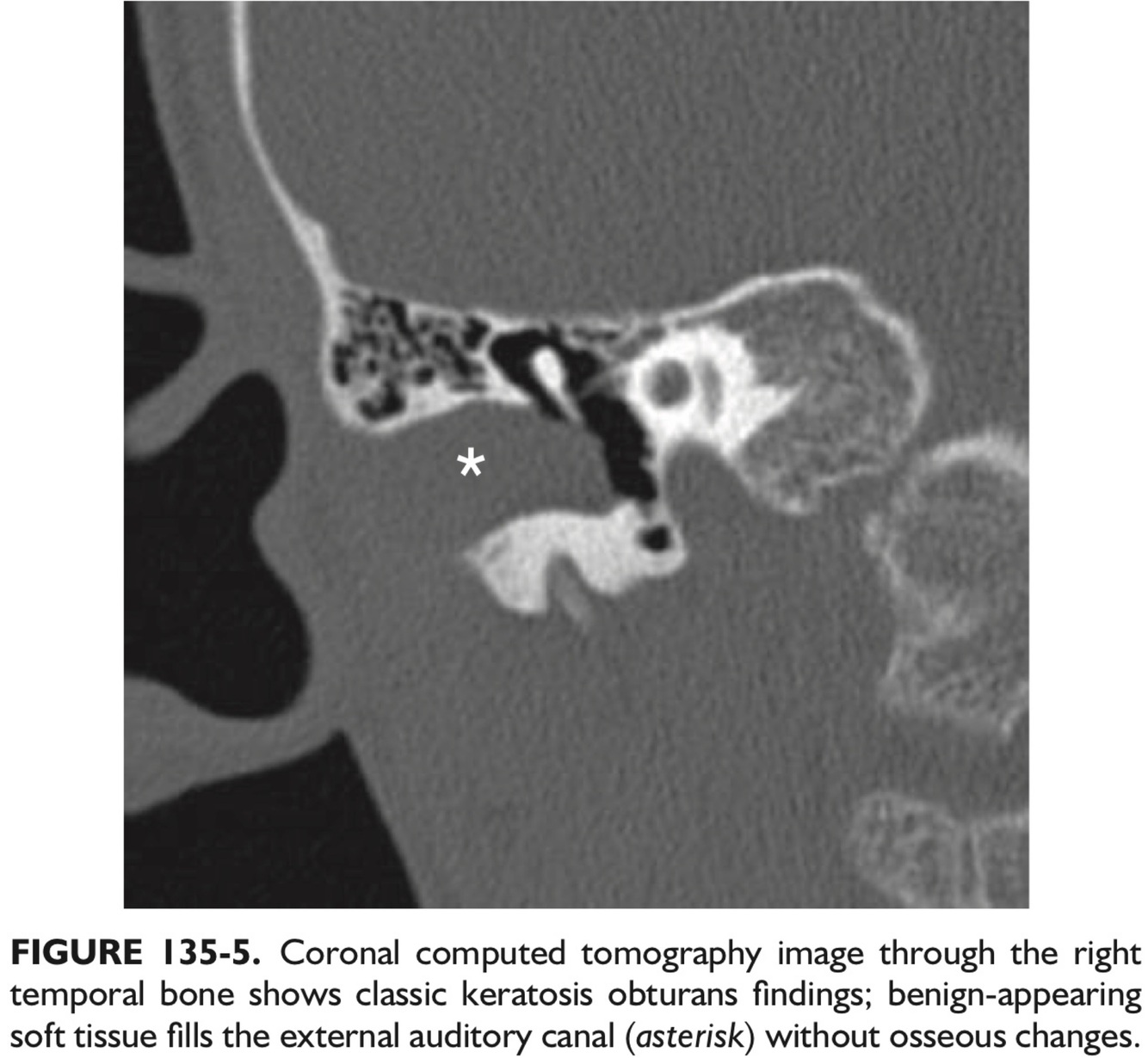 Keratosis obturans is an abnormal accumulation of keratinous debris w/in the EAC without erosive bony changes.