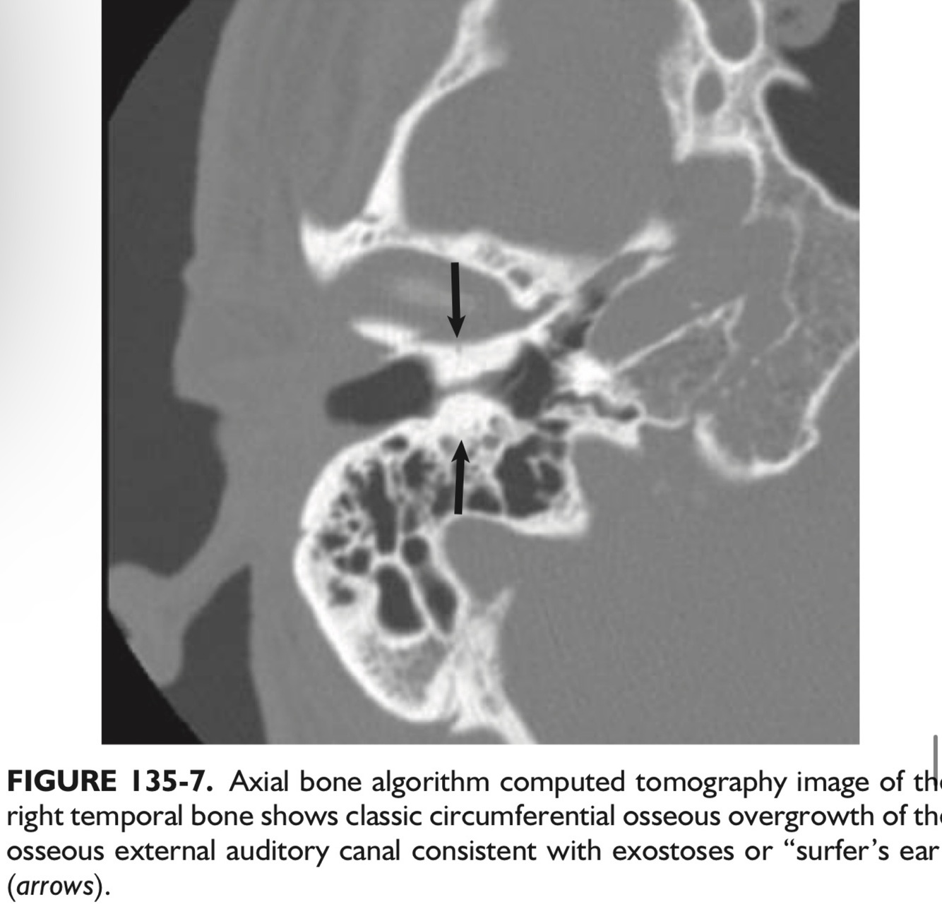 _____, a benign neoplasm of the EAC, are known as “surfer’s ear” frequently seen on imaging in some regions where cold water swimming is common.