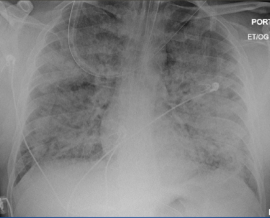 -Scattered irregular opacities, atelectasis, and focal consolidation may be present