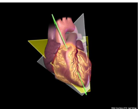 insert sheath into femoral artery or jugular vein depending on what we want to look at. Then go to the coronary vessels and inject iodinated contrast to see the vessel
