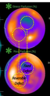 in nuclear perfusion imaging, what is a fixed vs reversible defect?