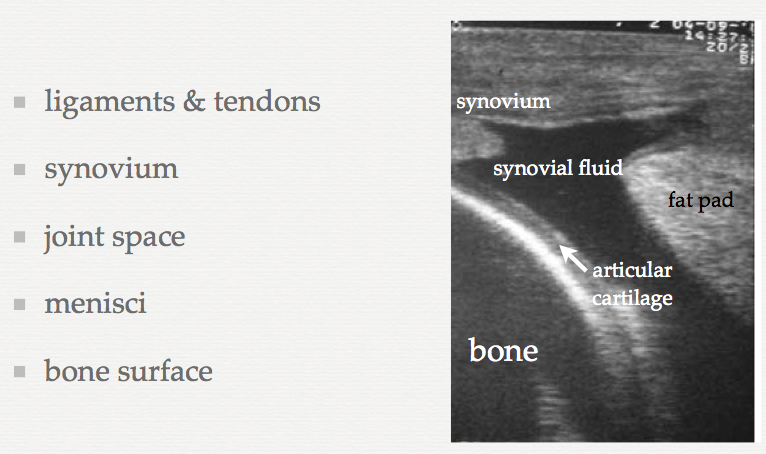 Effusion, synovial thickening, articular cartilage & subchondral bone irregularities