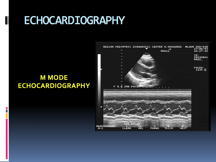 A form of echocardiography based on one-dimensional (“ice-pick”) analysis of the heart in motion.