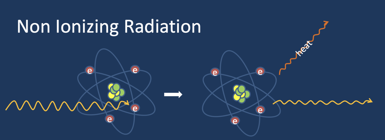 Radiation at the low end of the electromagnetic spectrum DOES NOT cause disruption of atoms when passing through substances and is therefore “nonionizing”.