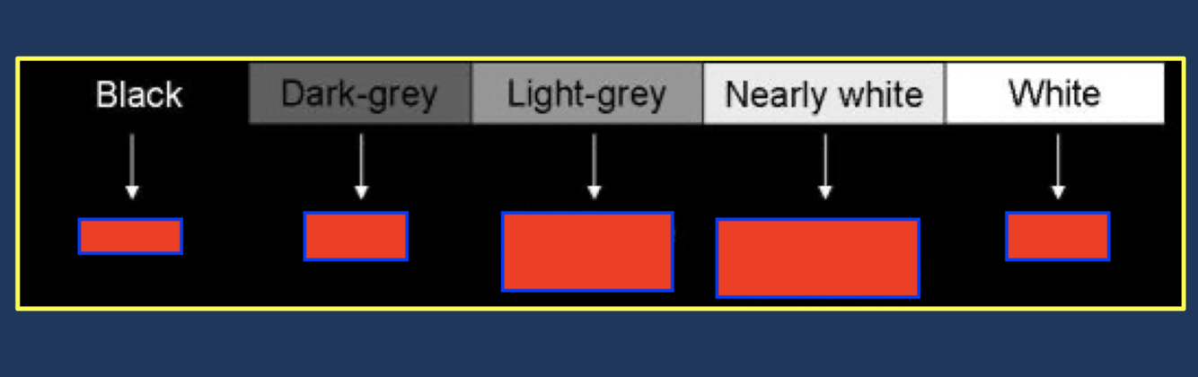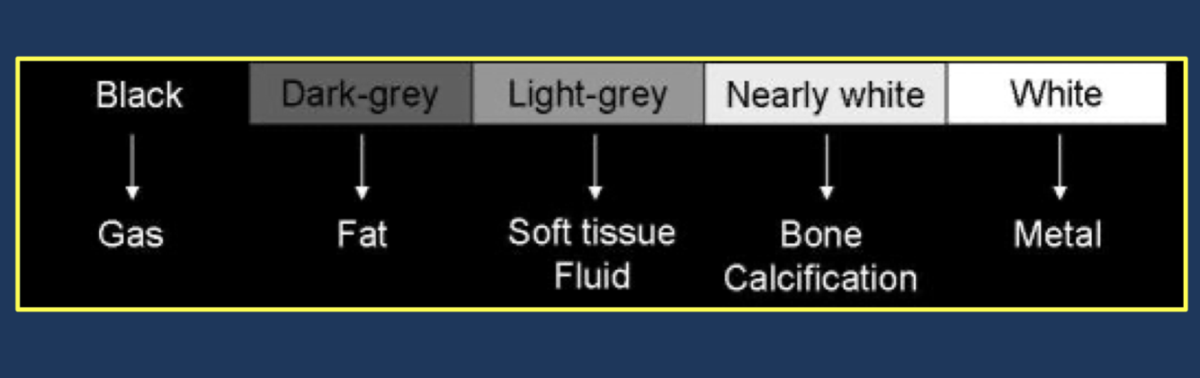 GREY: moderate reflection due to tissue interfaces ex: liver, spleen, kidney, uterus