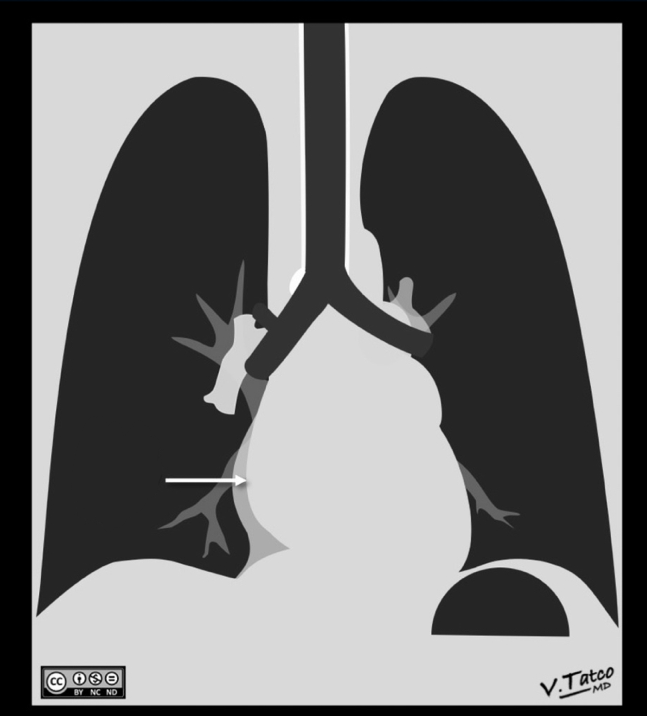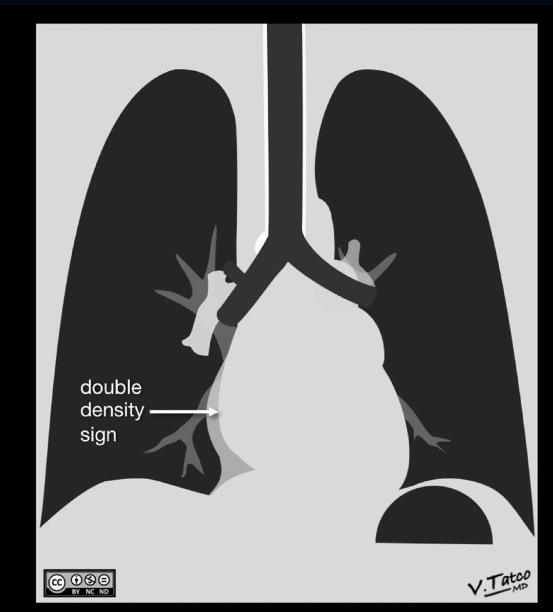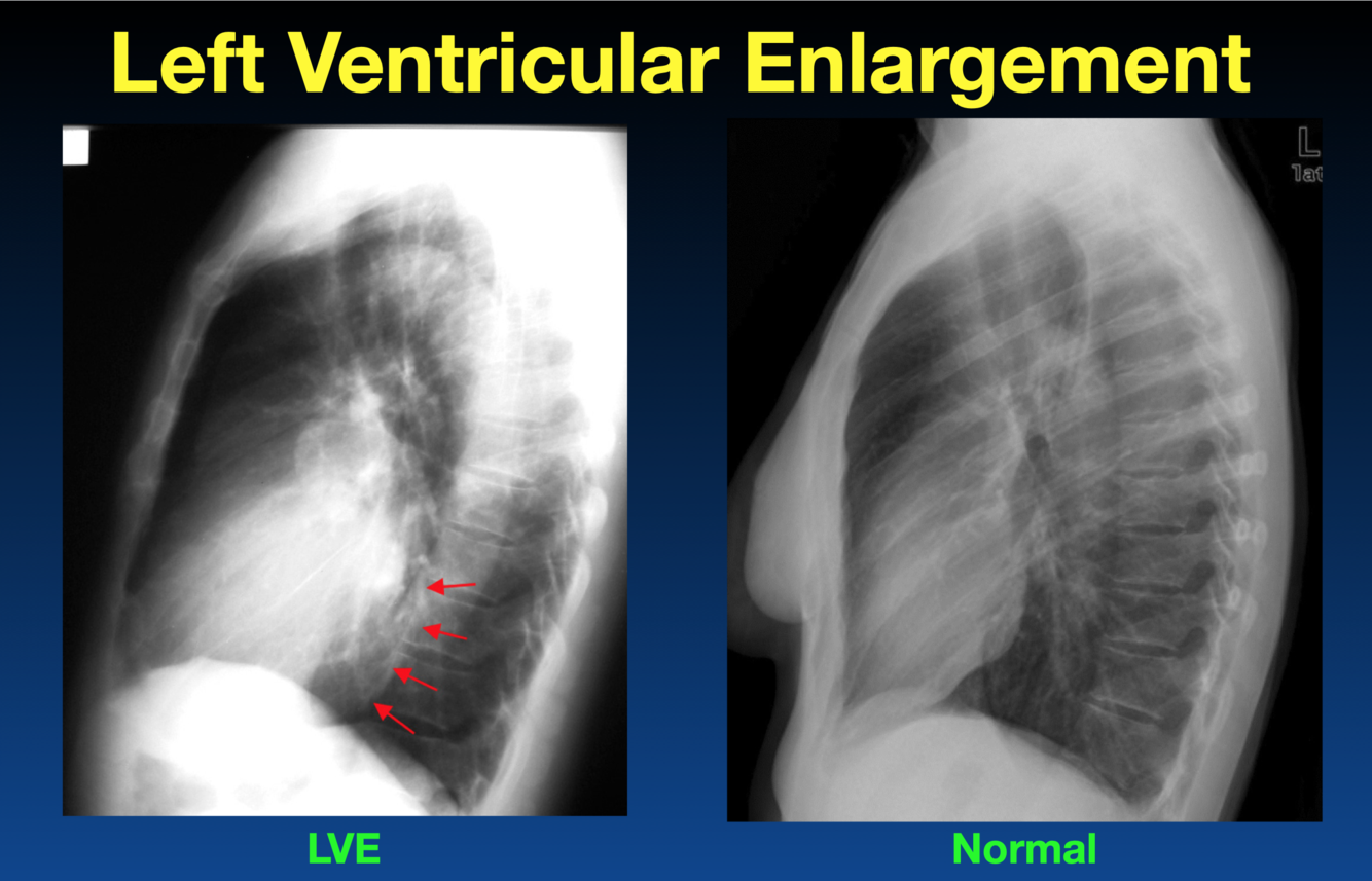 The left atrium is enlarged. What sign is the arrow pointing that indicates this?