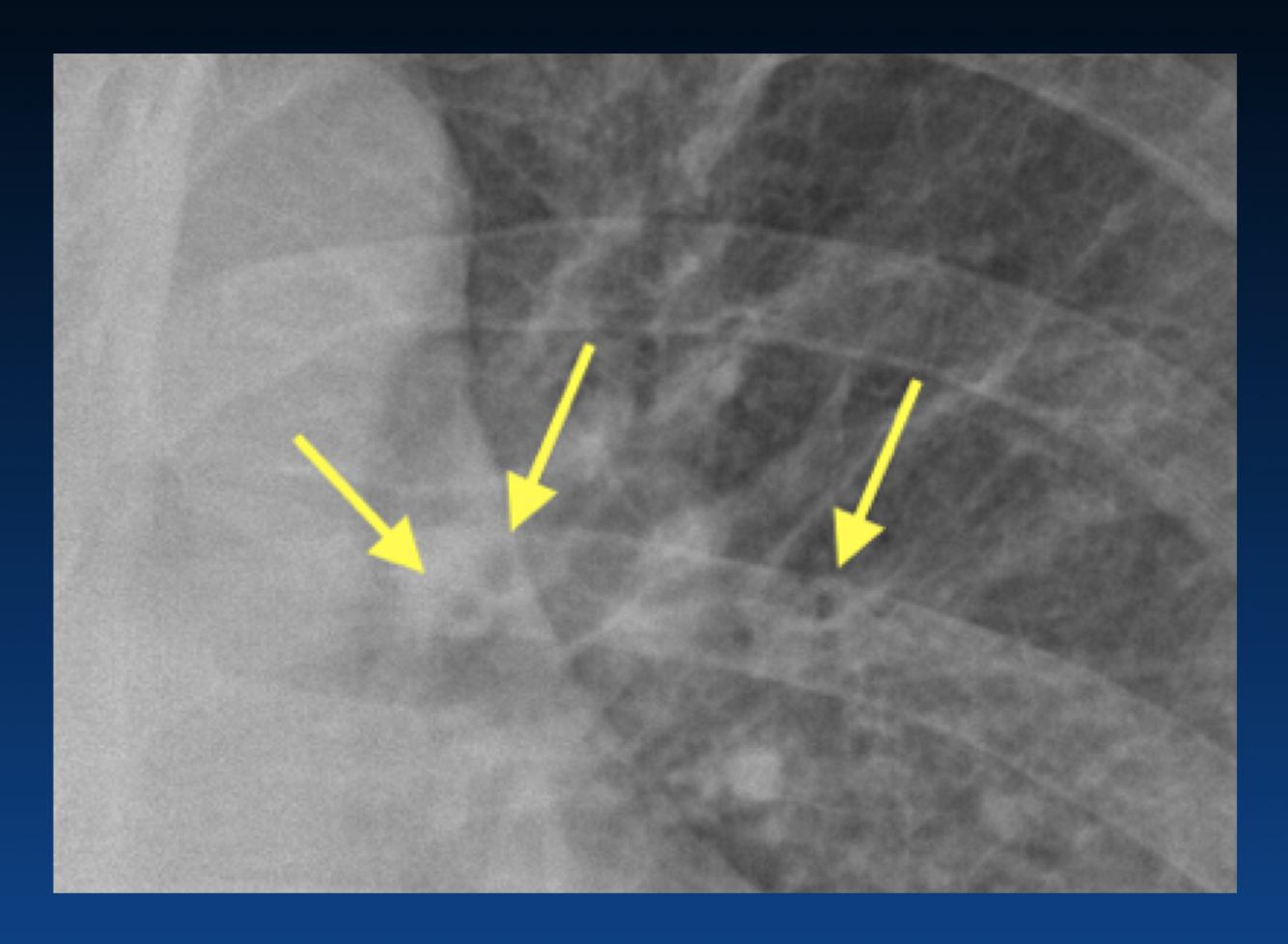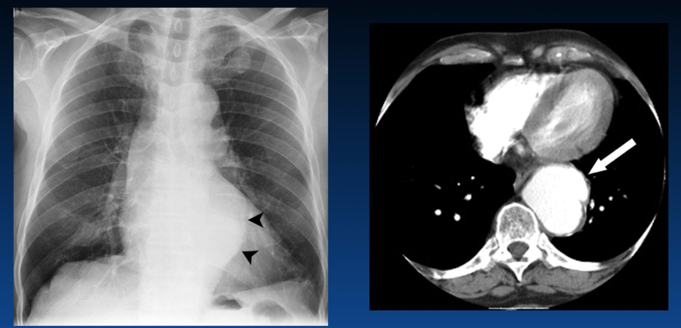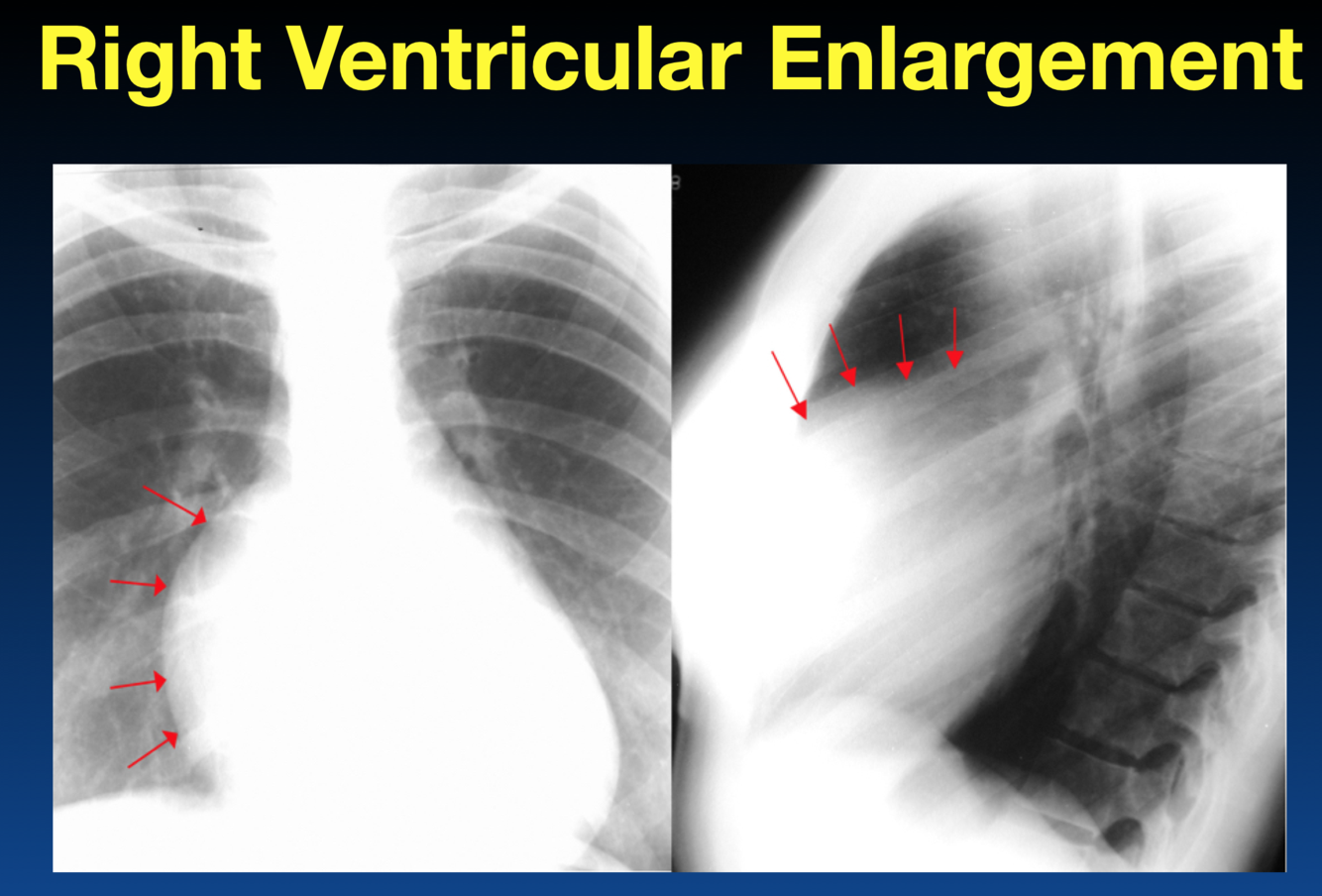The left atrium is enlarged. What sign is the arrow pointing that indicates this?