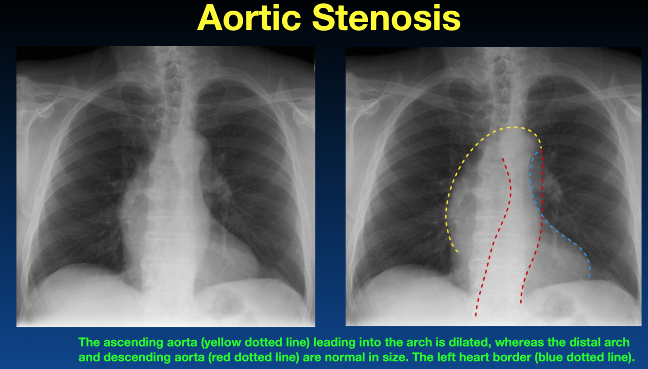 How can you tell the difference between aortic regurgitation and aortic stenosis on an x-ray?