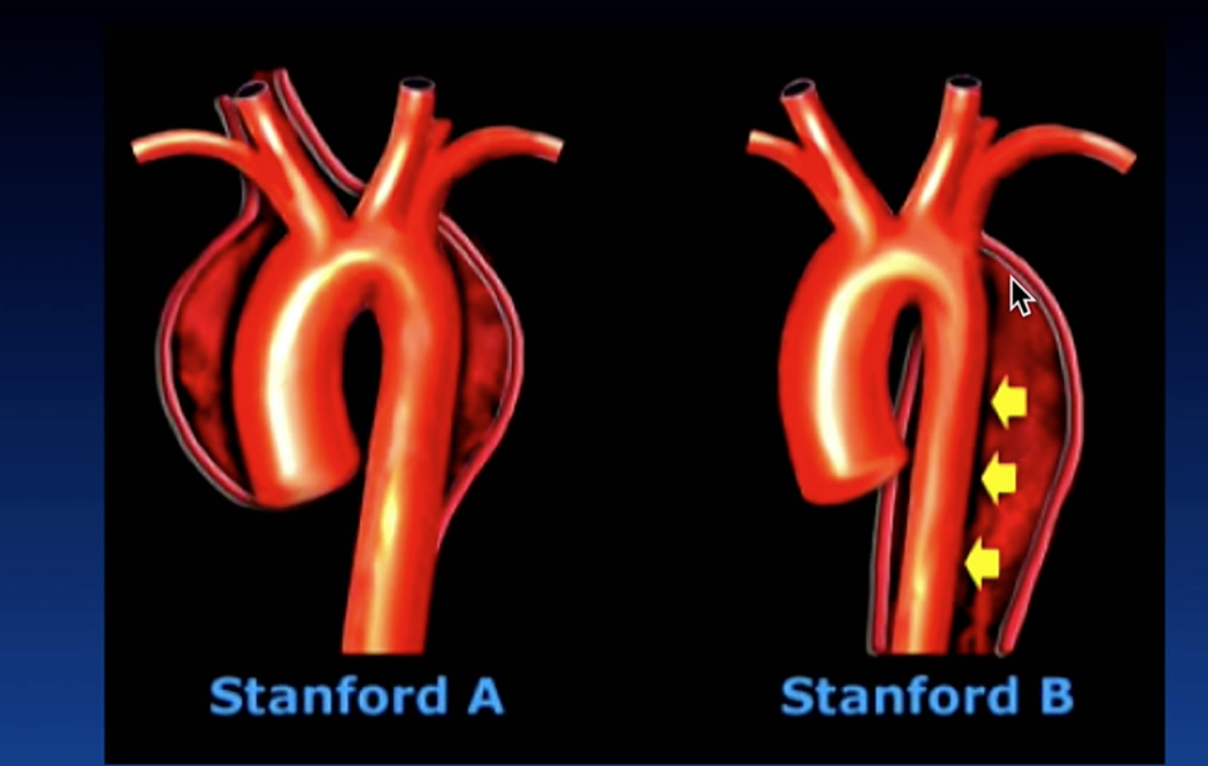 Which type of aortic dissection is treated surgically and which is treated medically?
