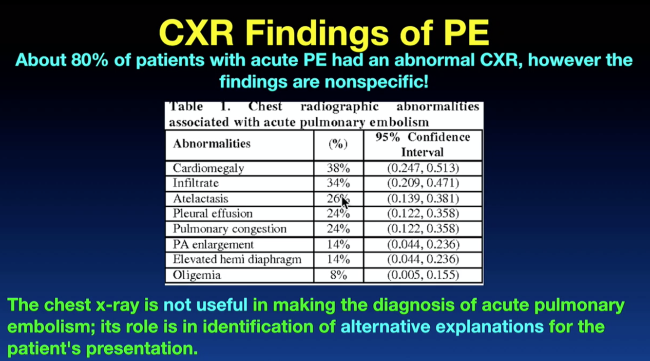How is chest x-ray used in acute pulmonary embolism?