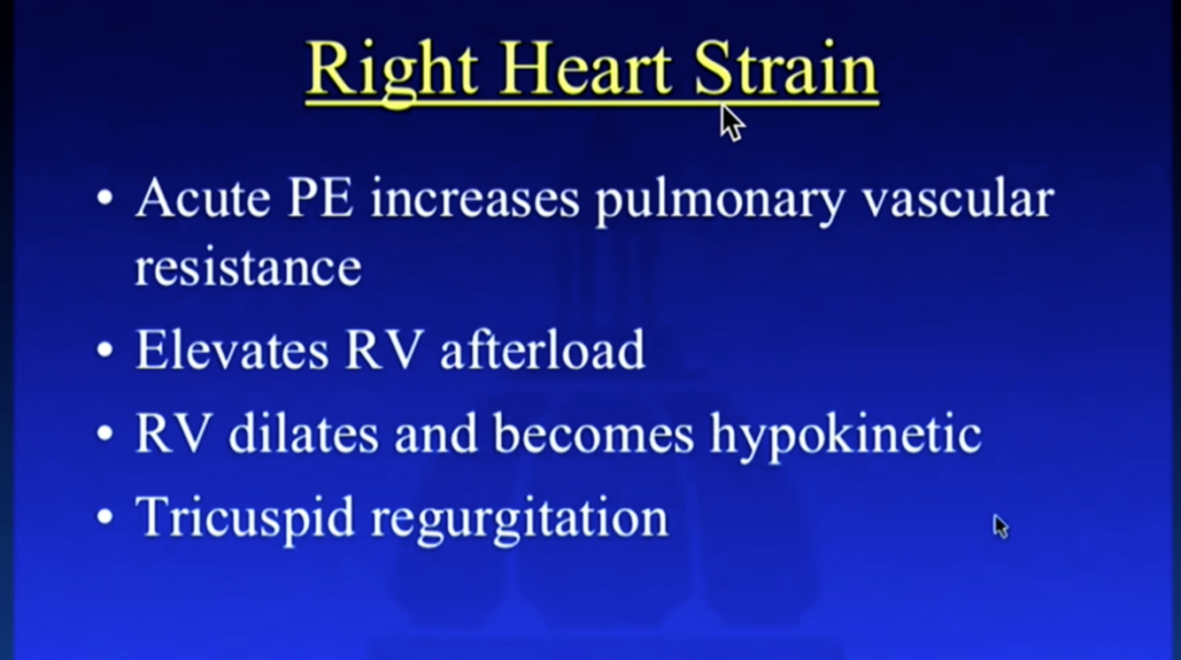 What are the features of right heart strain from pulmonary embolism?