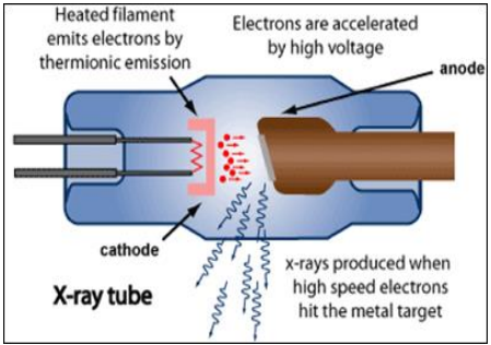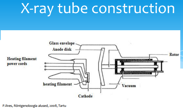 X-ray tube (vacuum) - containing an electron source (cathode) and target (anode).