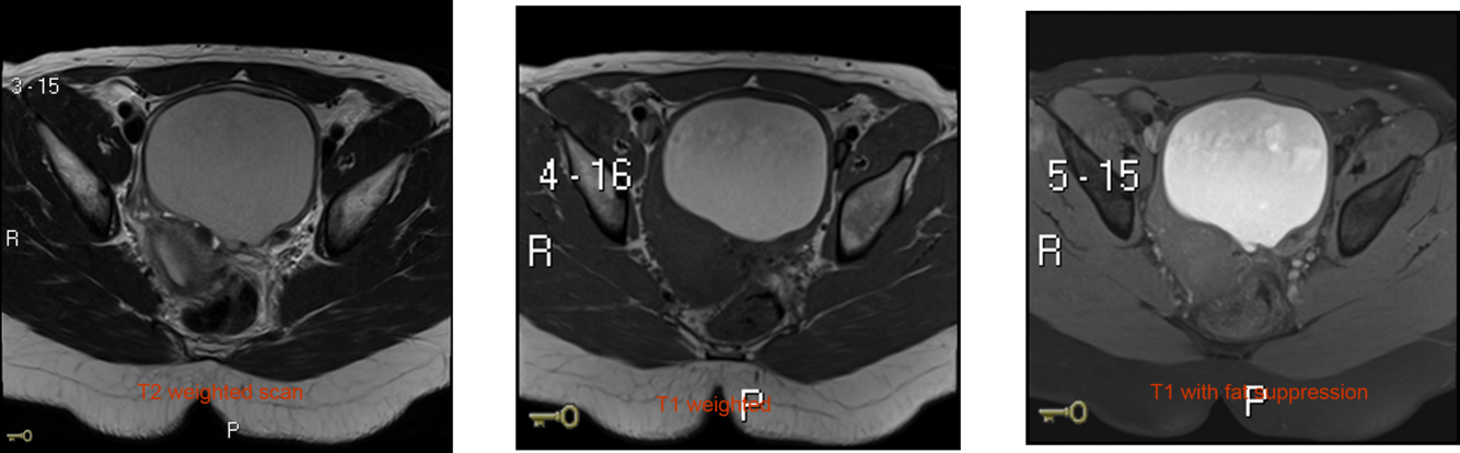 Describe the role of MRI in diagnosing endometriosis and also how endometriosis may appear on scan