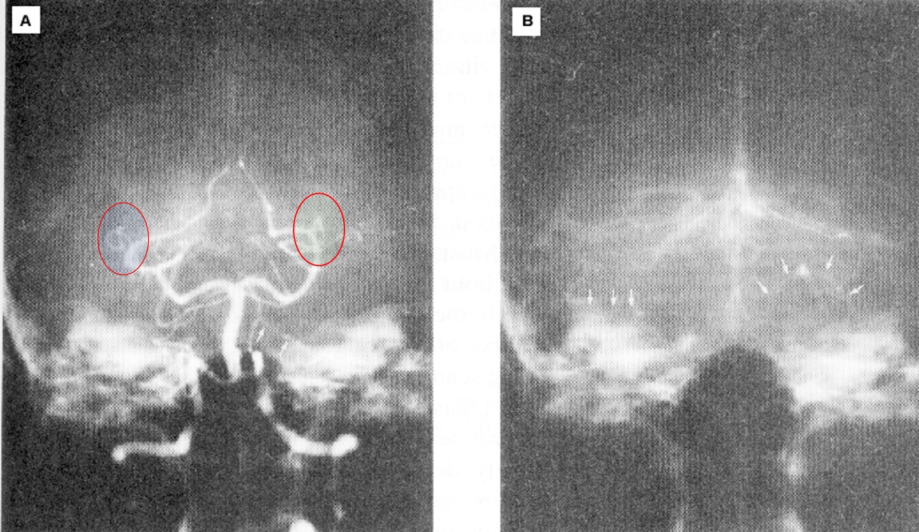 Arterial phase (left) : abnormal course of arterial vessels to the inner ear