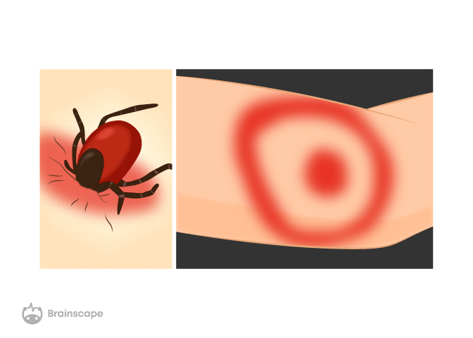 A ring-shaped rash anywhere on the body and flu-like symptoms.