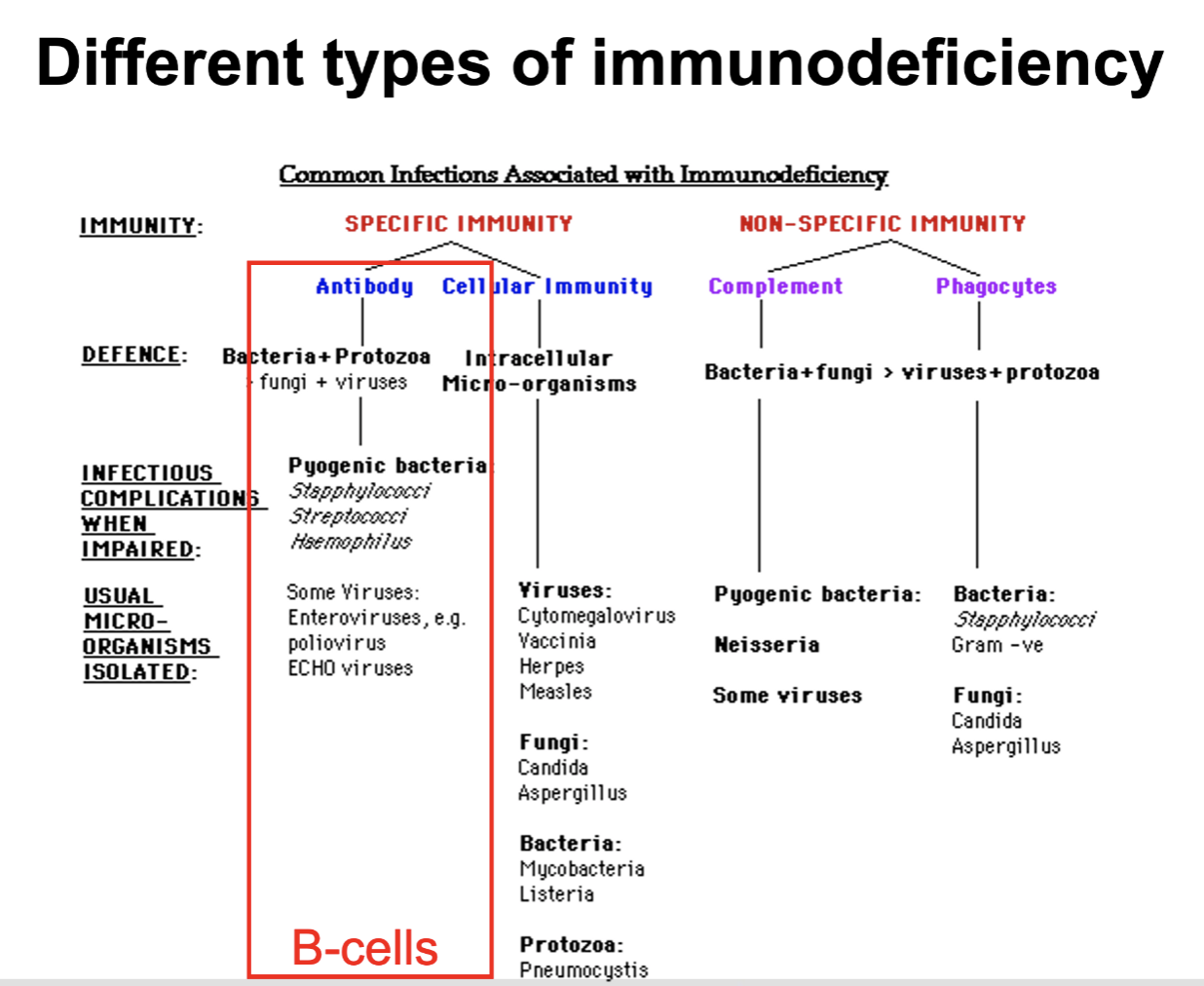 Hva mener man med forskjellige typer immunsvikt?
