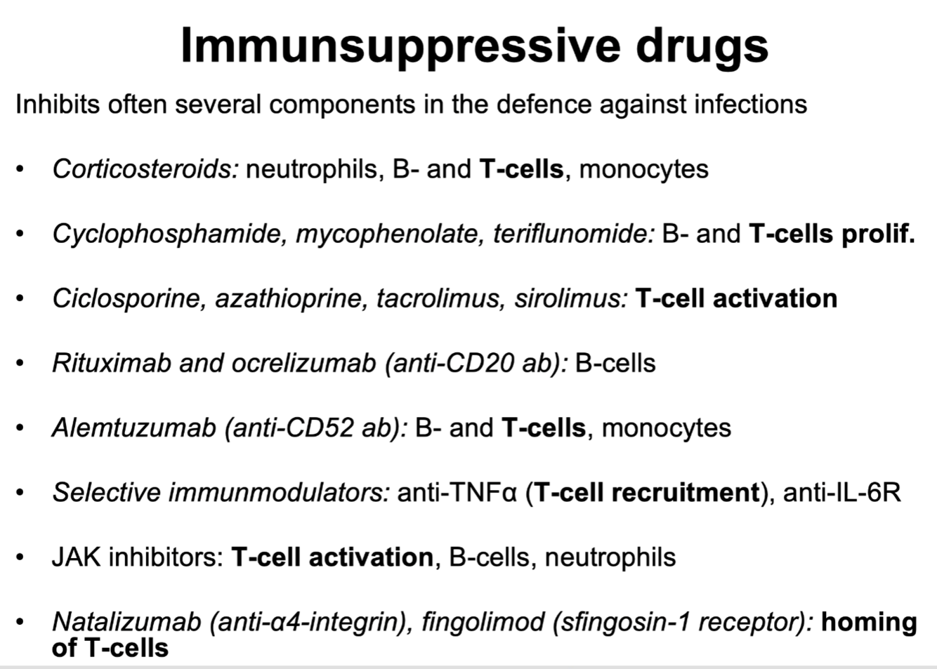 - Syklofosfamid, mykofenolat og teriflunomide