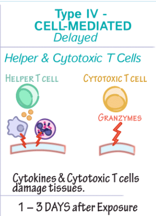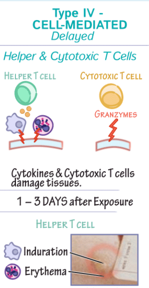 Examples of type IV hypersensitivity reactions include type I diabetes mellitus, multiple sclerosis, and Hashimoto’s thyroiditis.