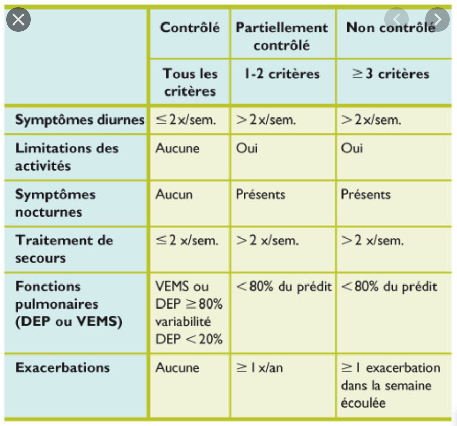 Nommez critères contrôle d’asthme (6)