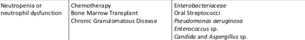 What are the possible causes and high risk pathogens for neutropaenia or neutrophil dysfunction?