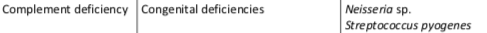 What are the possible causes and high risk pathogens for complement deficiency?