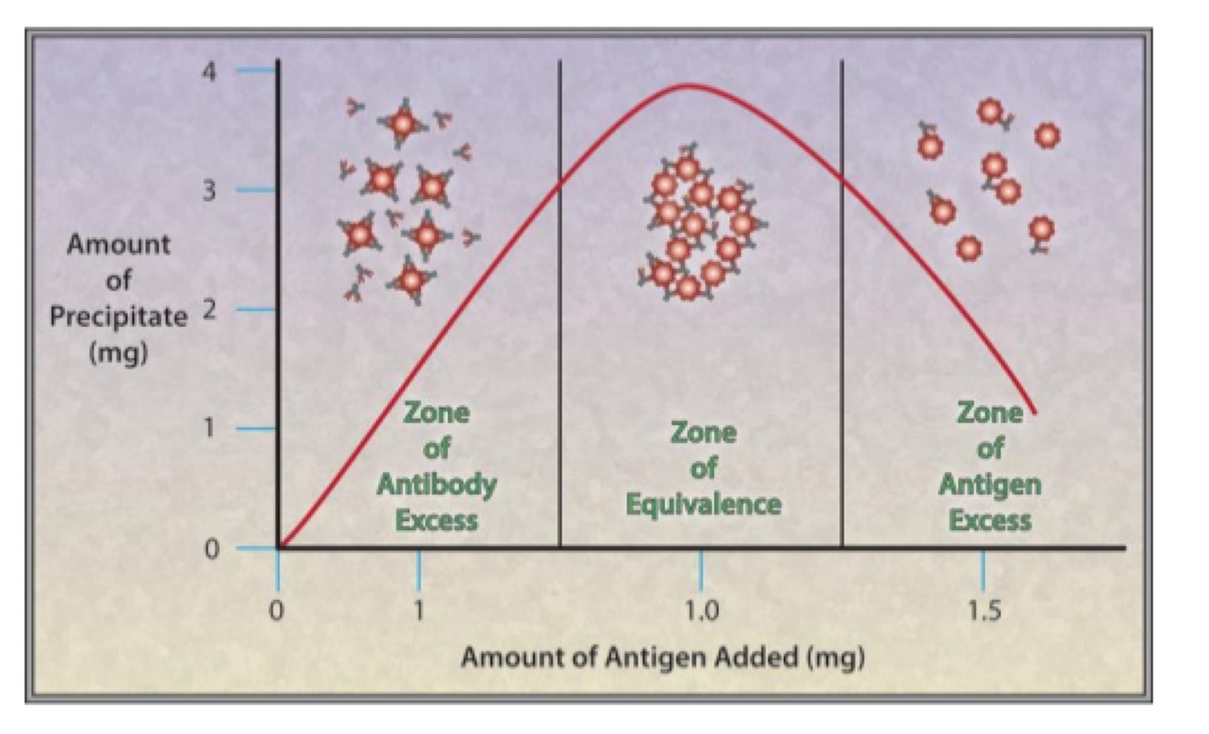 -precipitation of antigen & antibody complexes in a precipitation assays exploits the conc of antibody & antigen (zone of equivalence) to measure their quantities (titer)