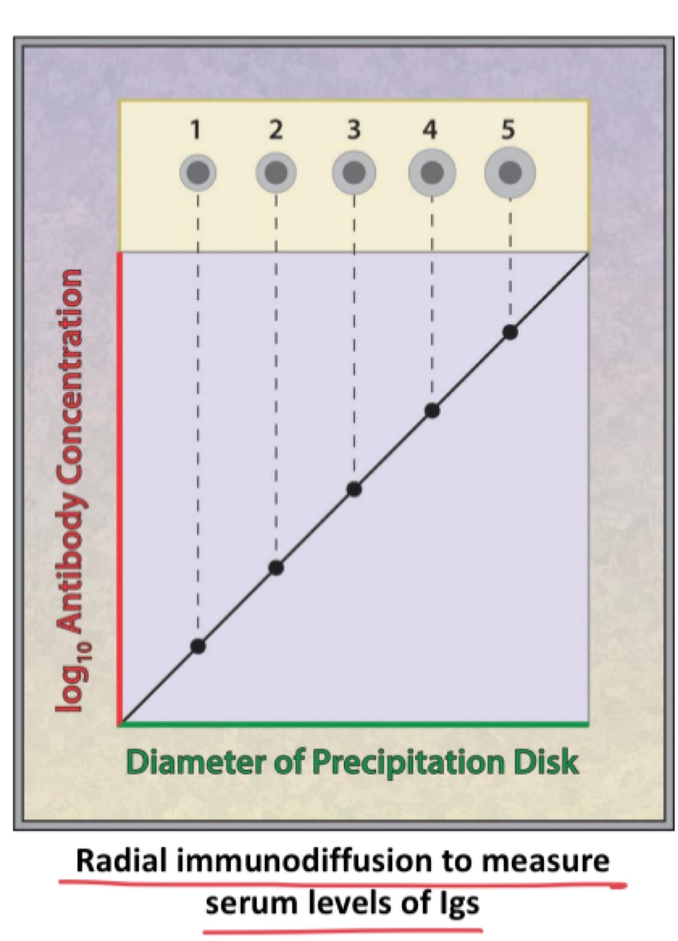 -area of circle proportional to conc of antigen or antibody within sample