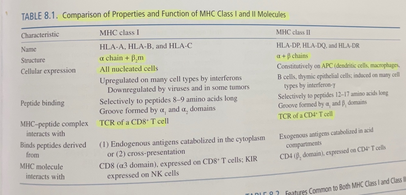 1. MHC class 1- expressed on all nucleated/platelets and not RBC in association with a small invariant peptide bound to MHC class 1 interacts with the TCR of the CD8+ T cell.