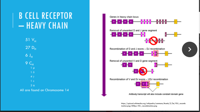 and 2 (RAG-1 & RAG-2), identifying where gene splicing
