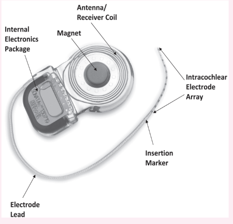 Microphone on the speech processor sitting behind the ear picks up the acoustic signal which converts it into electrical information, amplifies it, and sends to the speech processor