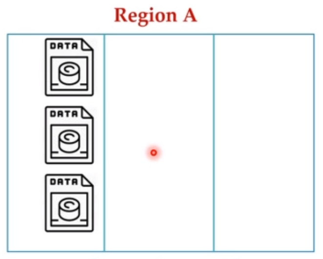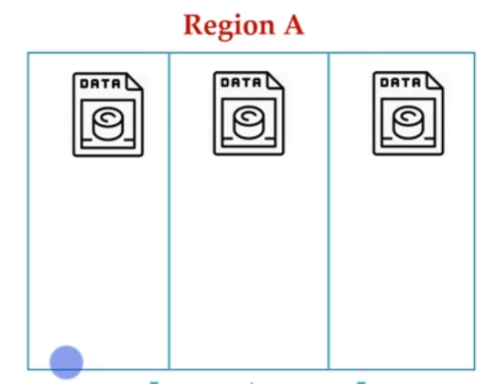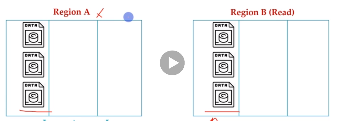 Copied across availability zones within 1st region. Copied within an availability zone in the 2nd region. Without failover data is accessable to individuals closest to the region.