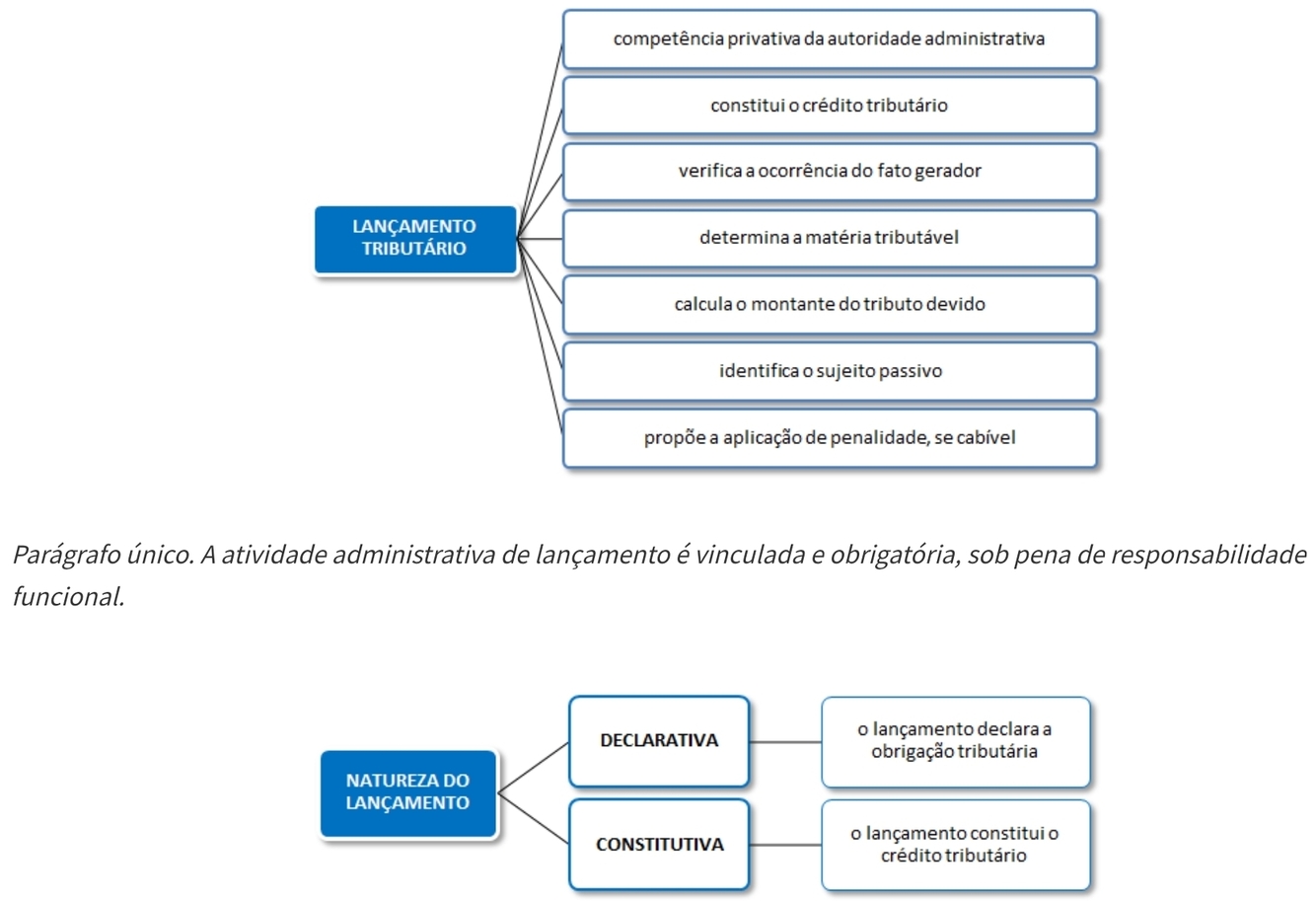 Art. 142. Compete privativamente à autoridade administrativa constituir o crédito tributário pelo lançamento, assim entendido o procedimento administrativo tendente a verificar a ocorrência do fato gerador da obrigação correspondente, determinar a matéria tributável, calcular o montante do tributo devido, identificar o sujeito passivo e, sendo caso, propor a aplicação da penalidade cabível.