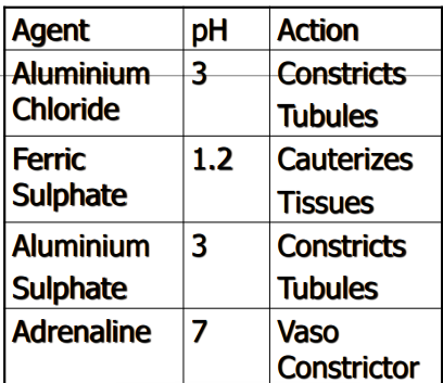 list some of the common haemostatic agents that may form part of the retraction paste or could be used to soakl the cord before placement