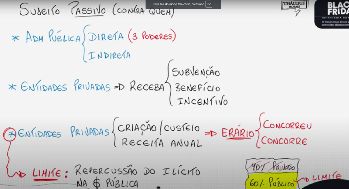 Tomar cuidado: Se o particular invade a particão a noite, não durante exercicio, não comete ato de improbidade, responde por roubo
