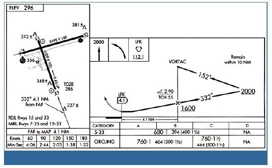 How will you identify the MAP for the VOR/DME RWY 33 approach at Lufkin/Angelina County?