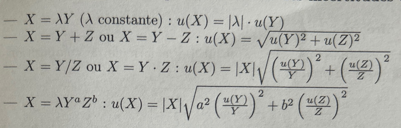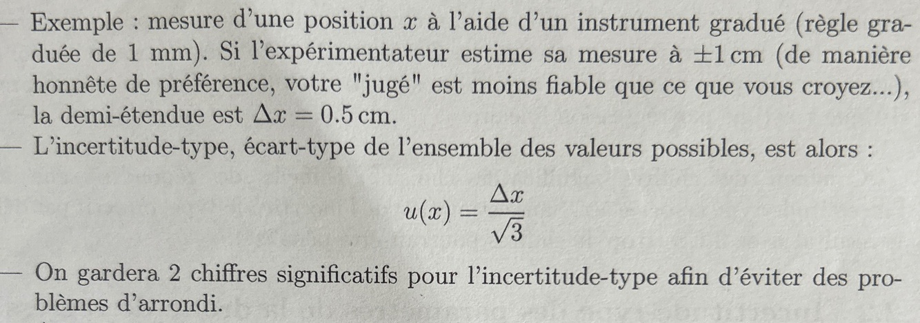 On trace deux droites supplémentaires extrêmes possible : l’une avec le paramètre maximum et l’autre avec le paramètre minimum possible, alors on fait une incertitude de type B : la demi différence des deux paramètres divisée par √(3) vaut l’incertitude-type