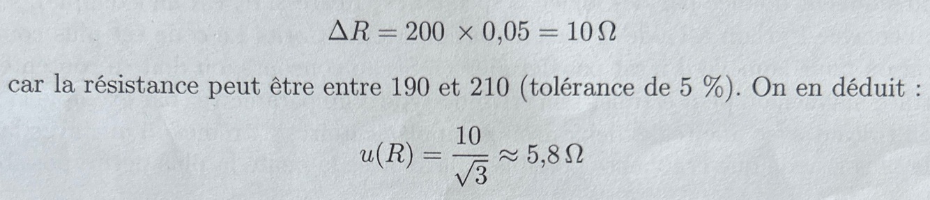 Soit une résistance R = 200Ω avec une tolérance de 5%, calculer l’incertitude-type sur R