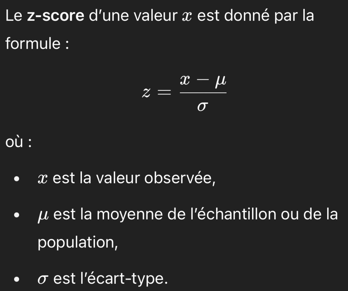 Faire un z-score et regarder s’il est plud grand ou petit que 2 en valeur absolue
