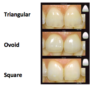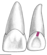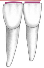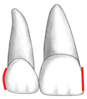 Maxillary mesial view: compare incisal edge thickness of central and lateral incisors