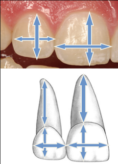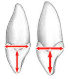 Central incisor has larger B-Li and I-C crown dimensions (on right)